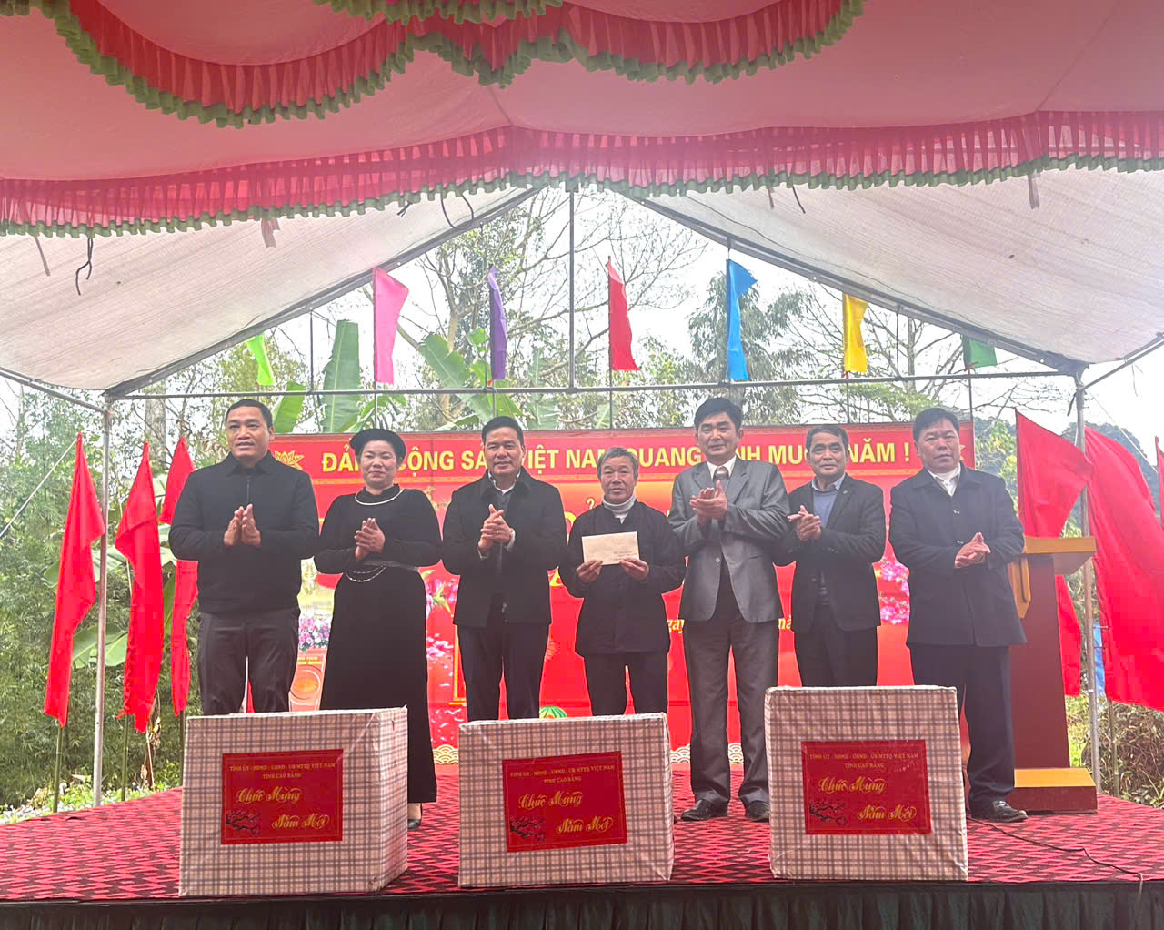 Nhân dịp này, đoàn công tác đã trao tặng 01 thùng quà cho Trường mầm non Đình Phong; 01 thùng quà cho xã Đình Phong; đồng thời trao 01 thùng quà và 5 triệu đồng của Tỉnh uỷ cho xóm Bo Nặm; trao 113 suất quà Tết cho các hộ dân thuộc xóm Bo Nặm và 06 suất quà cho các hộ dân thuộc xóm lân cận, mỗi suất trị giá 500 nghìn đồng.