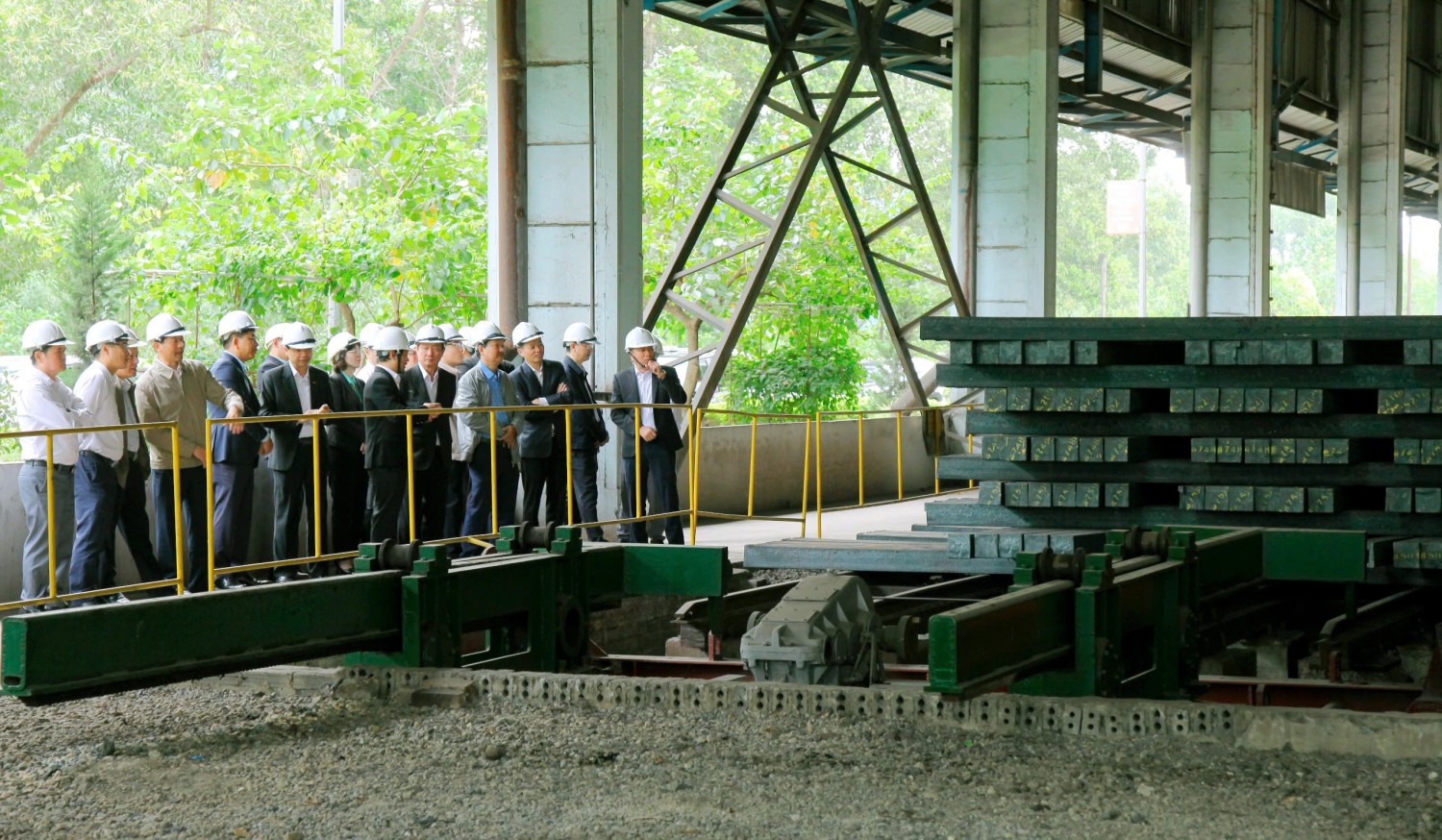 Đoàn công tác tham quan sản phẩm phôi thép của Công ty cổ phần Gang thép Cao Bằng.