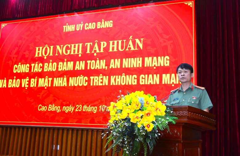 Tại Hội nghị, các báo cáo viên của Phòng An ninh mạng và Phòng, chống tội phạm sử dụng công nghệ cao, Công an tỉnh đã trình bày 02 chuyên đề chuyên sâu: (1) Hướng dẫn quy trình, trang bị kiến thức pháp luật về bảo đảm an toàn, an ninh mạng và an toàn thông tin trong sử dụng hệ thống điện tử, thiết bị số và mạng Internet; (2) Nhận diện nguy cơ, thách thức và giải pháp bảo vệ bí mật Nhà nước trên không gian mạng, nhất là trong điều kiện sau sắp xếp, kiện toàn tổ chức bộ máy ở cấp cơ sở.