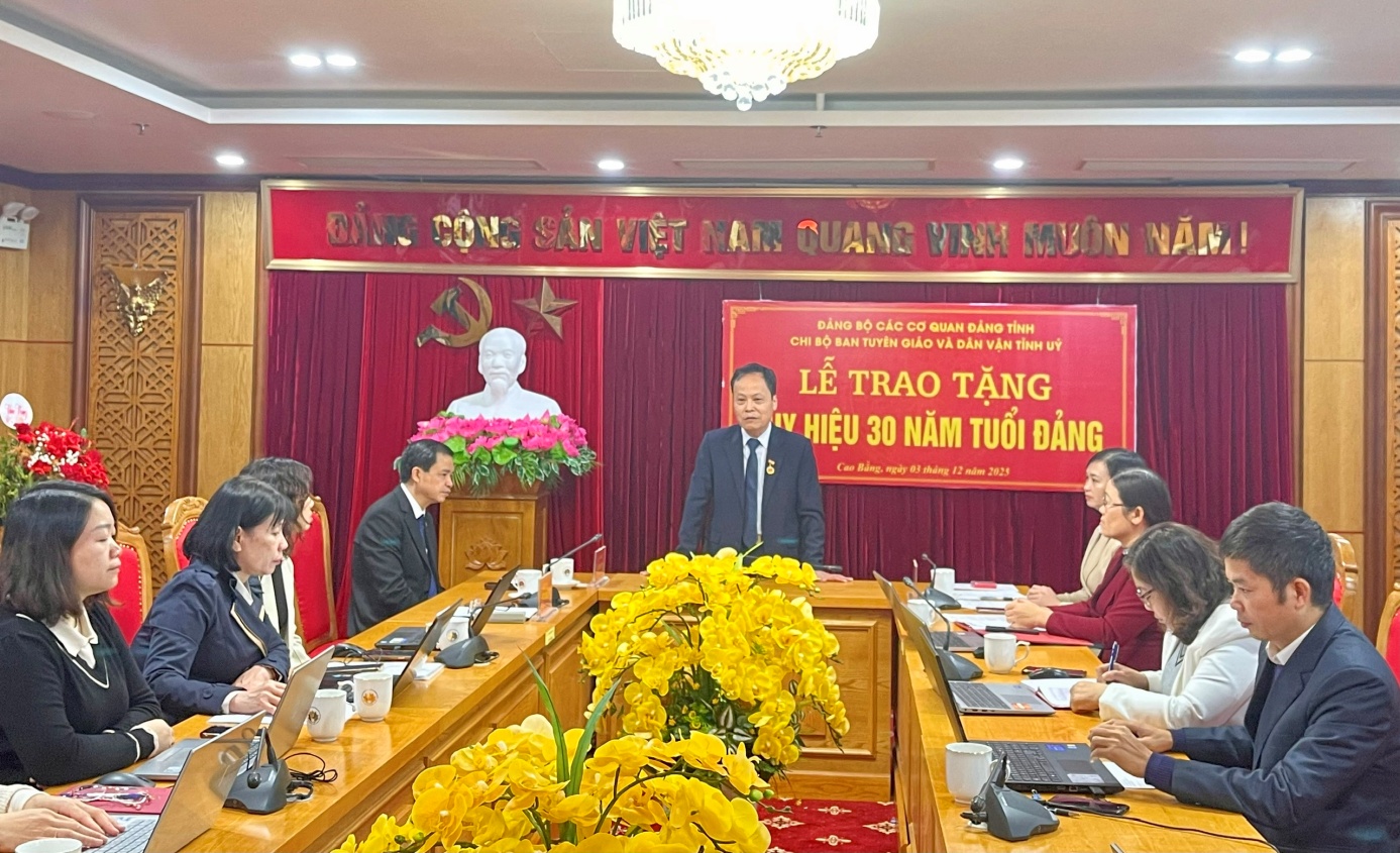 Trao Huy hiệu 30 năm tuổi Đảng cho đảng viên Nông Thanh Tùng, đồng chí Bế Thanh Tịnh, Phó Bí thư Thường trực Tỉnh uỷ, Chủ tịch HĐND tỉnh khẳng định: Huy hiệu 30 năm tuổi Đảng là danh hiệu cao quý nhằm ghi nhận những đóng góp, cống hiến của đảng viên trong suốt quá trình rèn luyện, phấn đấu và công tác. Đây không chỉ là niềm vinh dự của cá nhân đồng chí Nông Thanh Tùng mà còn là niềm tự hào chung của Chi bộ Ban Tuyên giáo và Dân vận Tỉnh uỷ. Đồng chí Phó Bí thư Thường trực Tỉnh uỷ mong muốn đồng chí đảng viên Nông Thanh Tùng tiếp tục phấn đấu, rèn luyện, phát huy tinh thần tiên phong, gương mẫu, giữ gìn phẩm chất đạo đức, bản lĩnh chính trị, góp phần xây dựng Chi bộ trong sạch, vững mạnh.