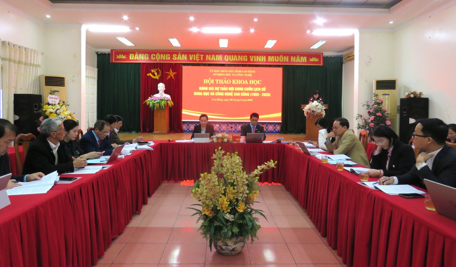 Sáng ngày 05/3/2026, Sở Khoa học và Công nghệ tỉnh Cao Bằng tổ chức Hội thảo khoa học đánh giá dự thảo nội dung cuốn sách “Lịch sử Khoa học và Công nghệ tỉnh Cao Bằng (1959 - 2025)”. Đồng chí Nông Thị Thanh Huyền, Tỉnh uỷ viên, Giám đốc Sở Khoa học và Công nghệ và đồng chí Nông Thành Thân, Phó Giám đốc Sở đồng chủ trì Hội thảo. Tham dự Hội thảo có đại diện Lãnh đạo Ban Tuyên giáo và Dân vận Tỉnh uỷ; đại diện lãnh đạo các sở, ban, ngành; nguyên lãnh đạo Sở qua các thời kỳ; đại diện đơn vị tư vấn; thành viên Ban chỉ đạo, Ban Biên soạn và các bộ phận giúp việc cuốn sách.