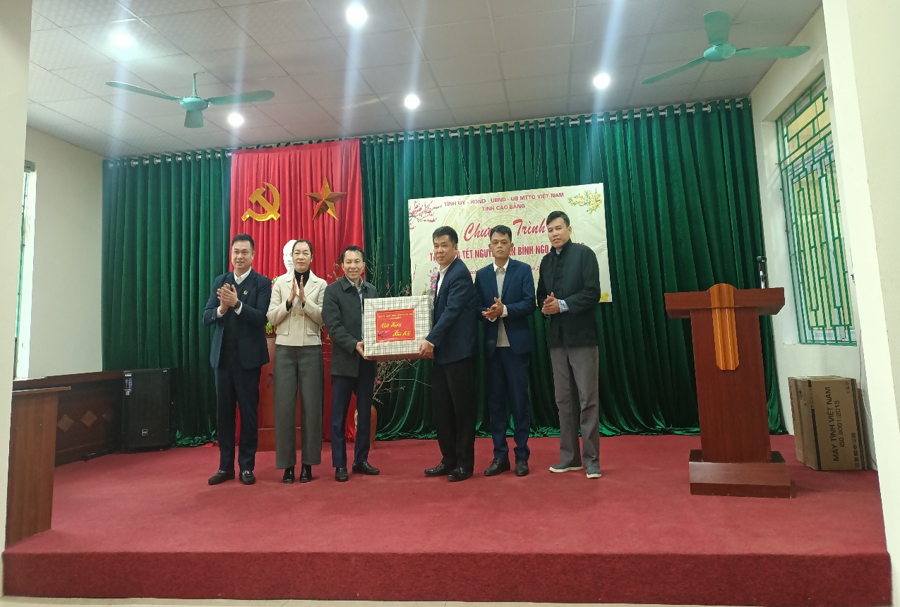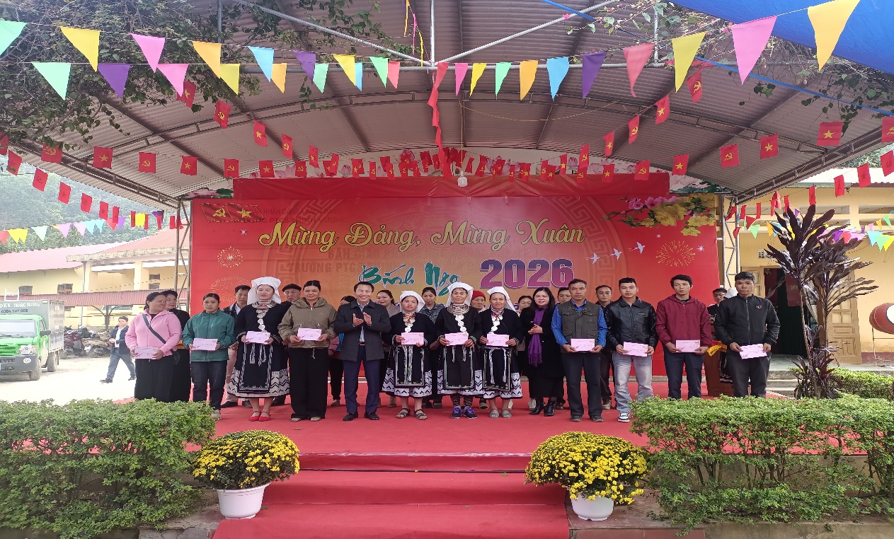 Đoàn công tác tỉnh tặng quà xóm Khuổi Pất và trường PTCS Thịnh Vượng.