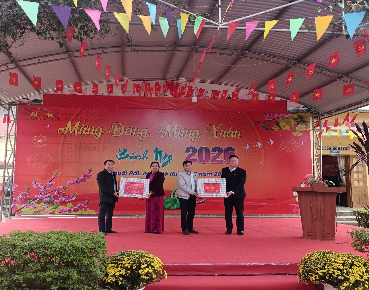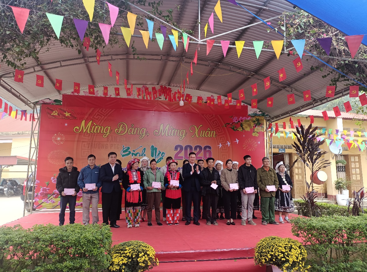 Đồng chí Lương Tuấn Hùng, Uỷ viên Ban Thường vụ Tỉnh uỷ, Giám đốc Sở Xây dựng chúc bà con đón Tết Nguyên đán vui tươi, an toàn và hạnh phúc. Chia sẻ với những khó khăn của người dân xóm Khuổi Pất, đồng thời mong muốn các hộ tiếp tục nỗ lực chuyển đổi cơ cấu cây trồng, vật nuôi phù hợp với điều kiện địa phương, tập trung phát triển kinh tế gia đình, góp phần giảm nghèo, thắt chặt tình đoàn kết toàn dân, giúp nhau phát triển kinh tế. Đề nghị cấp ủy, chính quyền địa phương có định hướng cụ thể để hỗ trợ, tạo điều kiện phát triển kinh tế cho xóm, ổn định đời sống của người dân. Nhân dịp này đoàn trao tặng 73 suất quà, mỗi suất trị giá 500 nghìn đồng cho nhân dân xóm Khuổi Pất và 06 suất quà cho đại biểu 02 xóm lân cận là xóm Sẻ Pản, xóm Khuổi Thin; trao tặng 03 thùng quà cho xã Bạch Đằng, xóm Khuổi Pất và trường PTCS Thịnh Vượng. Tỉnh ủy trao tặng 01 suất quà trị giá 5 triệu đồng cho xóm Khuổi Pất. Trước đó, đoàn trao tặng 150 suất quà của tỉnh cho hộ nghèo trên địa bàn xã Bạch Đằng; Sở Xây dựng, Sở Giáo dục và Đào tạo tặng xã Bạch Đằng 20.000.000đ tiền mặt và 02 bộ máy vi tính.