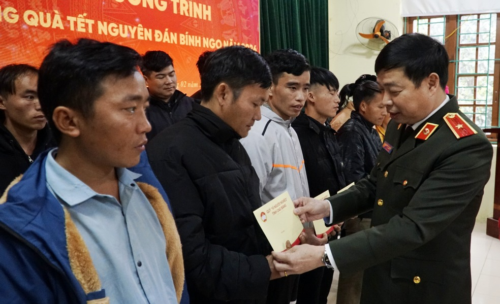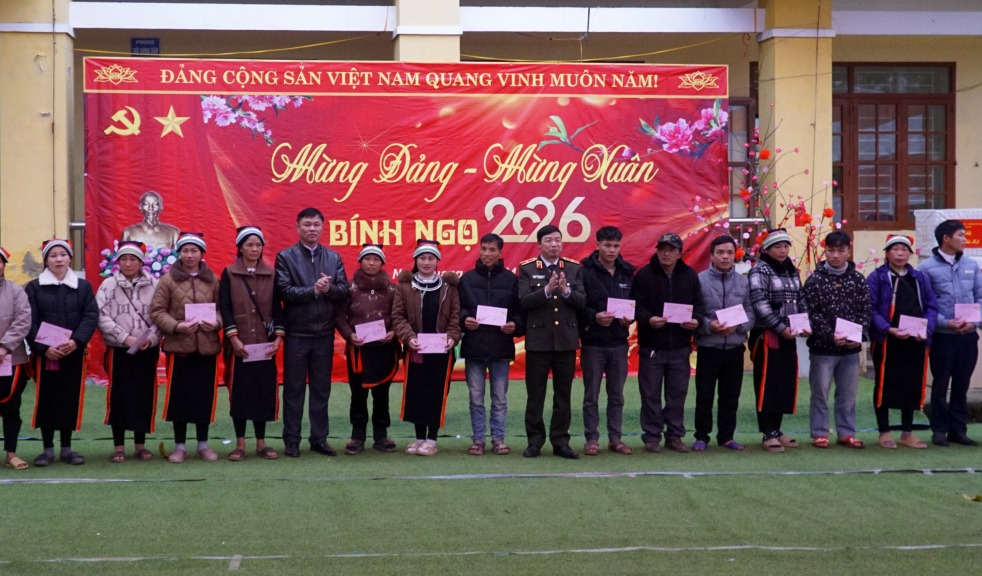 Phát biểu tại buổi gặp, đồng chí Thiếu tướng Nguyễn Quang Vinh, Uỷ viên Ban Thường vụ Tỉnh uỷ, Giám đốc Công an tỉnh ghi nhận, đánh giá cao những kết quả mà xóm đạt được trong thời gian qua, biểu dương Nhân dân trong xóm tích cực lao động sản xuất, giữ gìn an ninh trật tự, xây dựng đời sống văn hoá, giúp đỡ nhau trong cuộc sống hằng ngày. Chúc bà con đón Tết Nguyên đán Bính Ngọ 2026 vui tươi, an toàn và hạnh phúc. Chia sẻ với những khó khăn của người dân xóm Phia Cọ, mong muốn các hộ tiếp tục nỗ lực chuyển đổi cơ cấu cây trồng, vật nuôi phù hợp với điều kiện địa phương, tập trung phát triển kinh tế gia đình, góp phần giảm nghèo, thắt chặt tình đoàn kết toàn dân, xây dựng nông thôn mới. Đề nghị cấp uỷ, chính quyền địa phương có định hướng cụ thể để hỗ trợ, tạo điều kiện phát triển kinh tế cho xóm, nâng cao đời sống của người dân. Đồng thời, triển khai thực hiện tốt công tác cuộc bầu cử đại biểu Quốc hội khóa XVI và đại biểu Hội đồng nhân dân các cấp nhiệm kỳ 2026 - 2031.