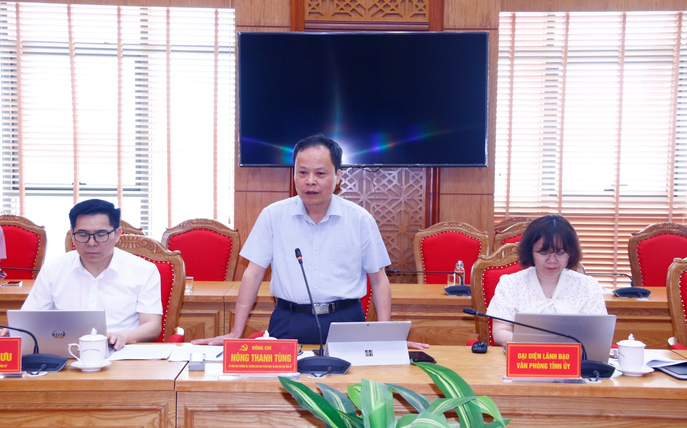 Đồng chí Nông Thanh Tùng - UVBTVTU, Trưởng Ban Tuyên giáo và Dân vận Tỉnh uỷ phát biểu tại buổi làm việc.