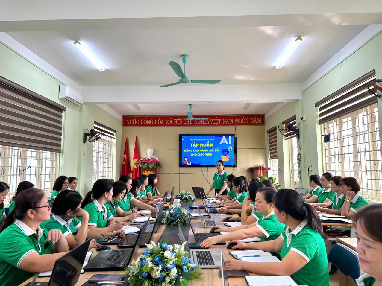 Cán bộ, giáo viên, nhân viên Trường Tiểu học Đề Thám tập huấn, tuyên truyền về kỹ năng ứng dụng công nghệ thông tin, chuyển đổi số.