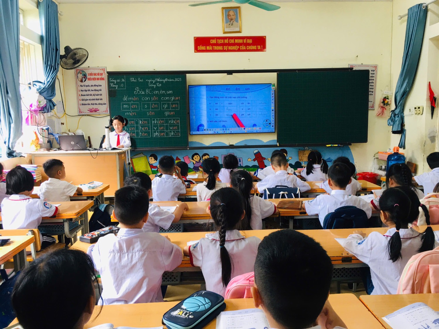 Cô Hà Hoàng Mai, giáo viên chủ nhiệm lớp 5D, chia sẻ: “Trước đây tôi còn lúng túng khi làm bài giảng điện tử. Nhờ được tập huấn và đồng nghiệp hỗ trợ, giờ tôi có thể tự thiết kế bài học sinh động hơn, học sinh hứng thú và tiếp thu nhanh hơn”.