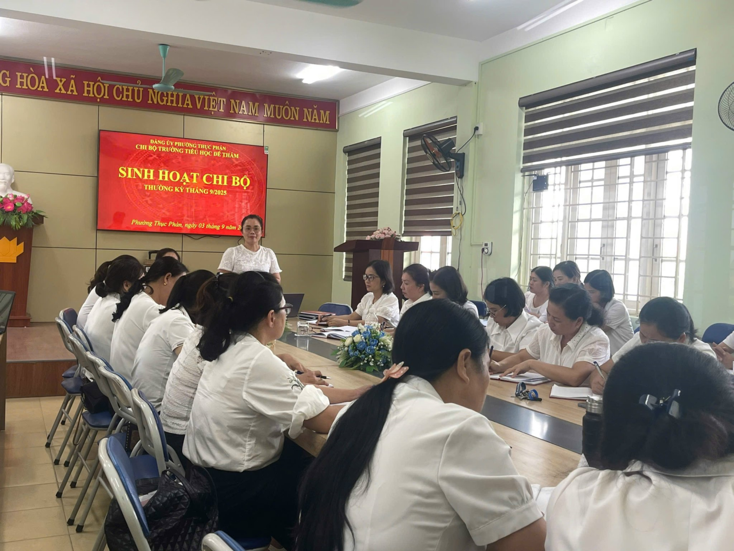 Từ thực tế, một bộ phận giáo viên còn hạn chế kỹ năng sử dụng thiết bị và phần mềm giảng dạy, Chi bộ Trường Tiểu học Đề Thám xác định rõ phương châm: “Muốn chuyển đổi số thành công, trước hết phải vận động khéo, làm gương trước”. Nhà trường phát động phong trào “Mỗi giáo viên là một hạt nhân công nghệ”, tổ chức 06 buổi tập huấn, tuyên truyền cho 100% cán bộ, giáo viên, nhân viên về kỹ năng ứng dụng CNTT, chuyển đổi số và khai thác phần mềm dạy học. Sau tập huấn, 36/36 giáo viên đã chủ động tham gia các khóa học, đạt chứng chỉ CNTT, nhiều thầy cô mạnh dạn ứng dụng các công cụ mới như Canva, Quizizz, AI hỗ trợ bài giảng, tạo ra hơn 3.500 bài giảng điện tử và học liệu số. Trong quản lý học tập, 25/25 giáo viên chủ nhiệm thường xuyên sử dụng hệ thống LMS để giao bài, chấm điểm, tương tác với học sinh, góp phần biến dạy học trực tuyến trở thành hoạt động thường xuyên, hiệu quả.