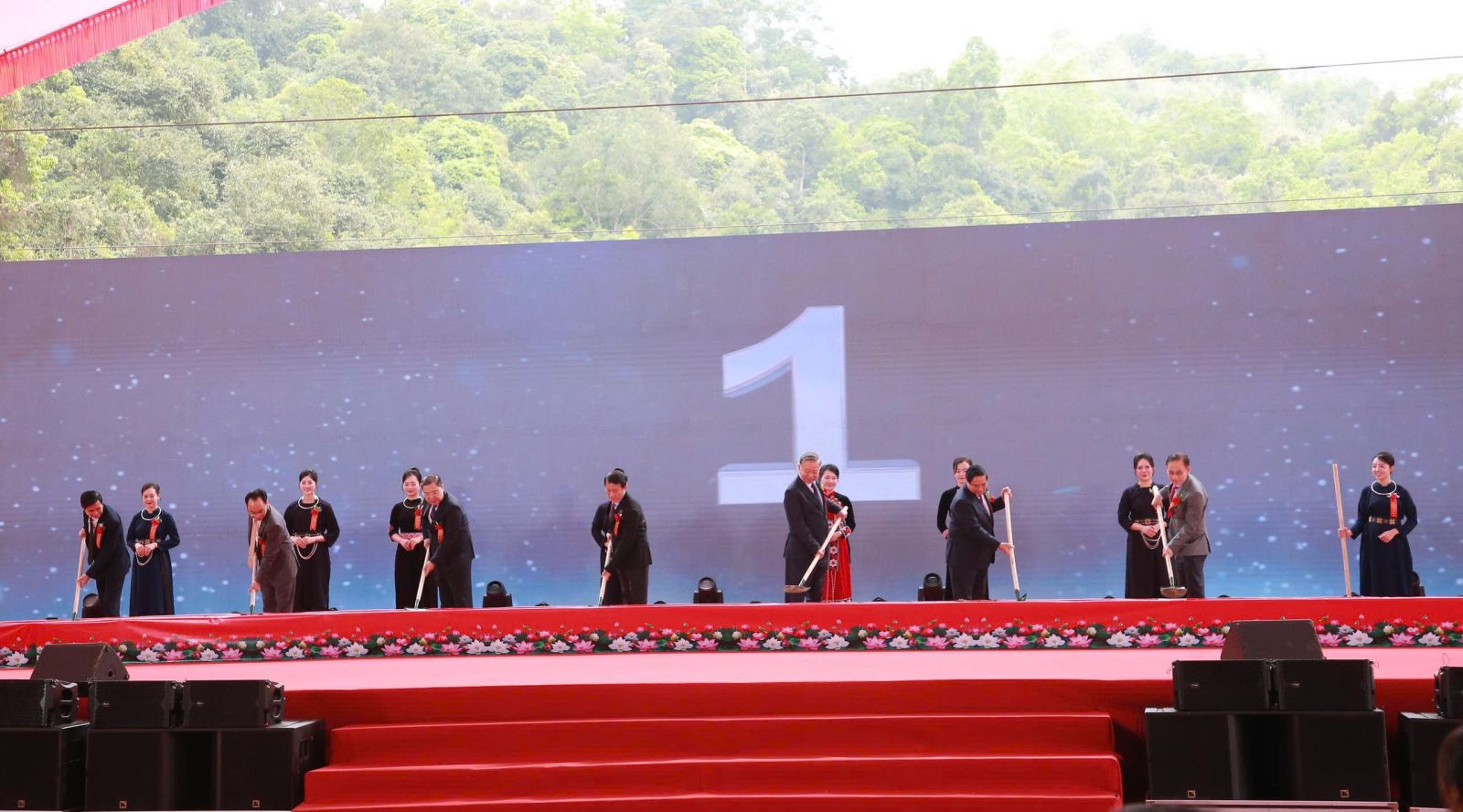 Tổng Bí thư Tô Lâm, Thủ tướng Chính phủ Phạm Minh Chính cùng các đồng chí lãnh đạo Đảng, Nhà nước thực hiện nghi thức động thổ xây dựng trường.
