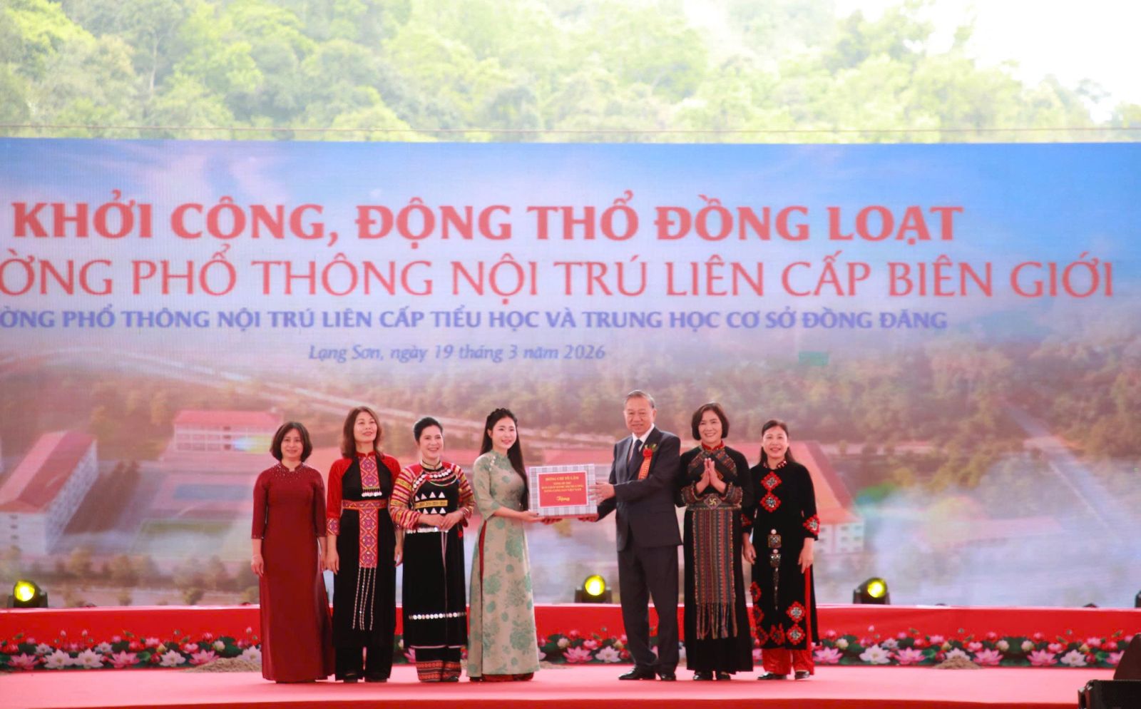 (ĐCSVN) - Sáng 19/3, tại xã Đồng Đăng, tỉnh Lạng Sơn, Tổng Bí thư Tô Lâm, Thủ tướng Chính phủ Phạm Minh Chính cùng các đồng chí lãnh đạo Đảng, Nhà nước đã dự Lễ khởi công đồng loạt các trường phổ thông nội trú liên cấp biên giới giai đoạn 2, tiến tới hoàn thành mục tiêu tại Thông báo kết luận số 81-TB/TW của Bộ Chính trị khóa XIII.