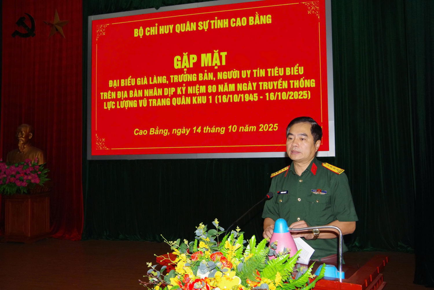 Tại buổi gặp mặt, các già làng, trưởng bản, người có uy tín đã được thông tin một số nội dung về tình hình thế giới, khu vực, trong nước; kết quả thực hiện nhiệm vụ quốc phòng, quân sự địa phương của lực lượng vũ trang tỉnh thời gian qua và kết quả phát triển kinh tế - xã hội của tỉnh 9 tháng đầu năm 2025. Trong những năm qua, tỉnh Cao Bằng luôn ưu tiên nguồn lực thực hiện các chương trình mục tiêu quốc gia như: Chương trình Mục tiêu quốc gia xây dựng nông thôn mới, Chương trình Mục tiêu quốc gia giảm nghèo bền vững, Chương trình Mục tiêu quốc gia phát triển kinh tế - xã hội vùng đồng bào dân tộc thiểu số và miền núi… Việc triển khai thực hiện có hiệu quả công tác dân tộc và các chương trình mục tiêu quốc gia nói trên đã góp phần cải thiện đời sống vật chất và tinh thần của đồng bào các dân tộc thiểu số trong tỉnh.