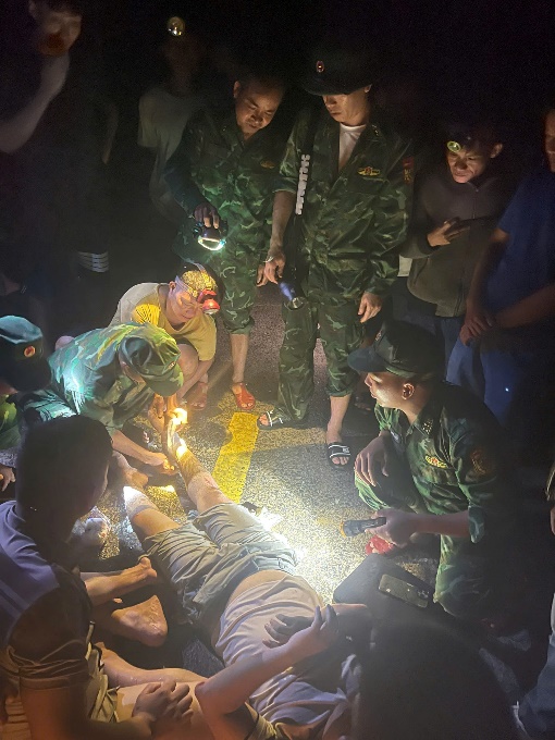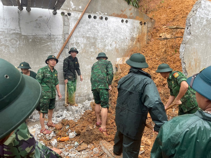 Đồn Biên phòng cửa khẩu Sóc Giang phối hợp với các lực lượng và quần chúng nhân dân tìm kiếm nạn nhân bị vùi lấp do sạt lở