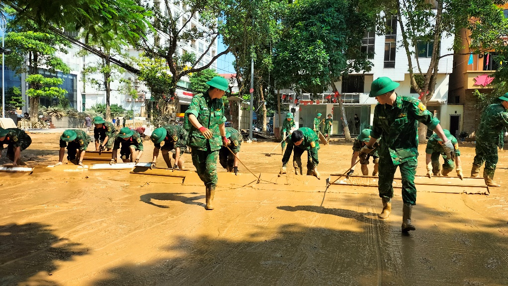Những người lính quân hàm xanh giữa tâm lũ biên cương