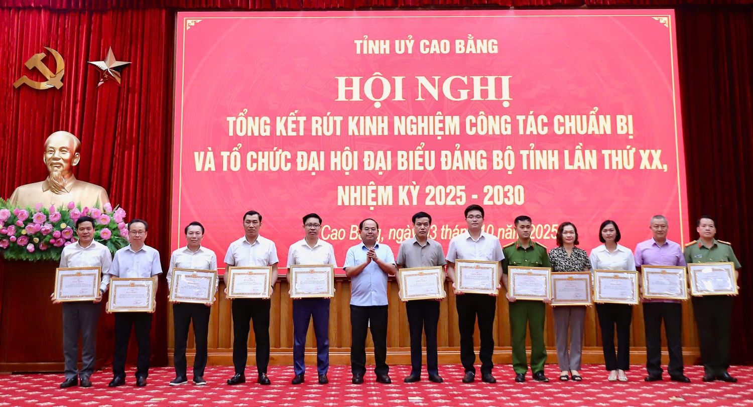 Tại Hội nghị, Ban Thường vụ Tỉnh uỷ tặng Bằng khen cho 21 tổ chức đảng, 31 đảng viên có thành tích xuất sắc trong phục vụ Đại hội đại biểu Đảng bộ tỉnh Cao Bằng lần thứ XX, nhiệm kỳ 2025 - 2030. Trước đó, Hội nghị đã tổ chức phát động ủng hộ Nhân dân khắc phục hậu quả của cơn bão số 10 Bualoi.