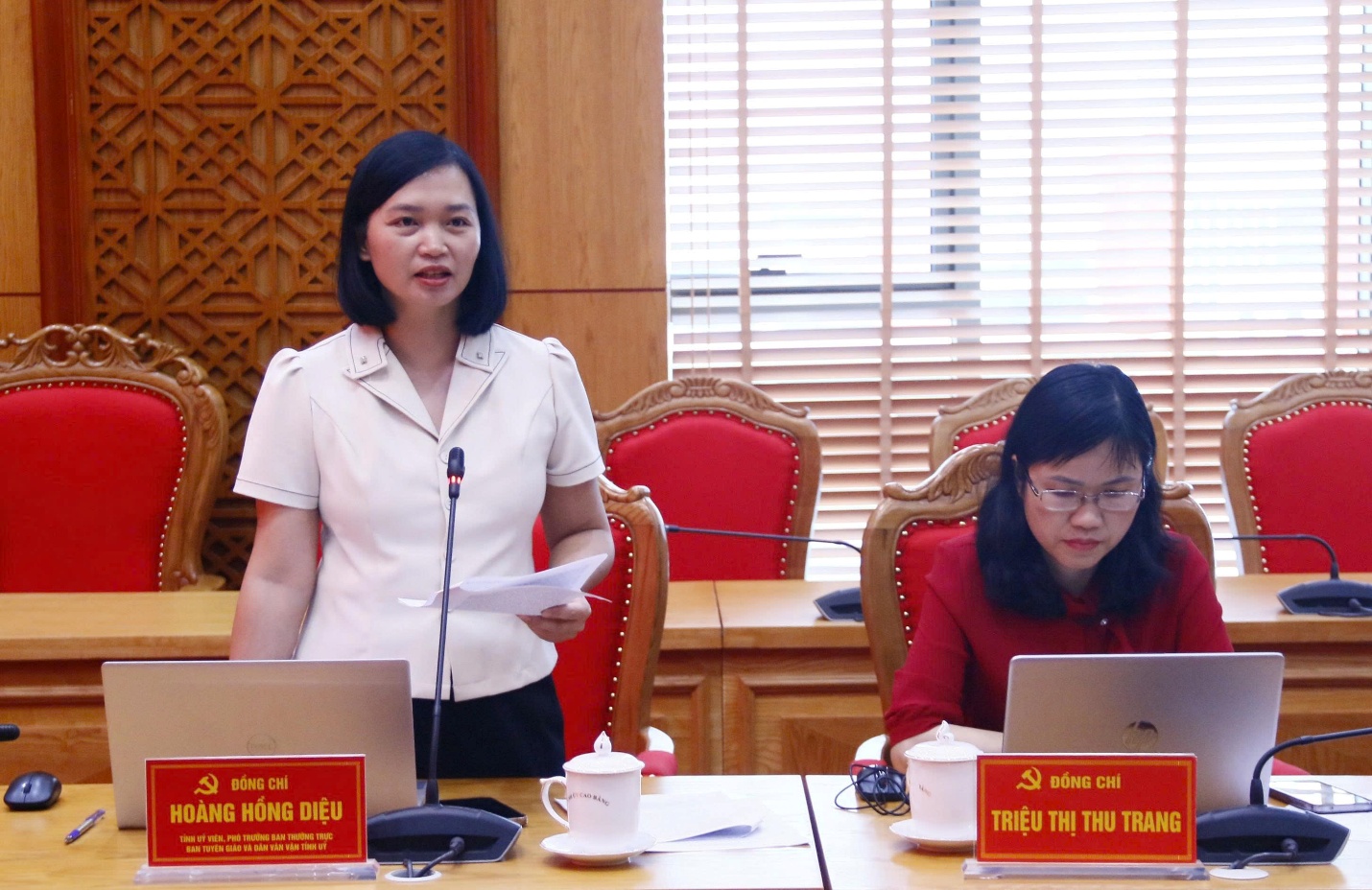Đồng chí Hoàng Hồng Diệu, Tỉnh ủy viên, Phó Trưởng Thường trực Ban Tuyên giáo và Dân vận Tỉnh uỷ phát biểu tại buổi làm việc.