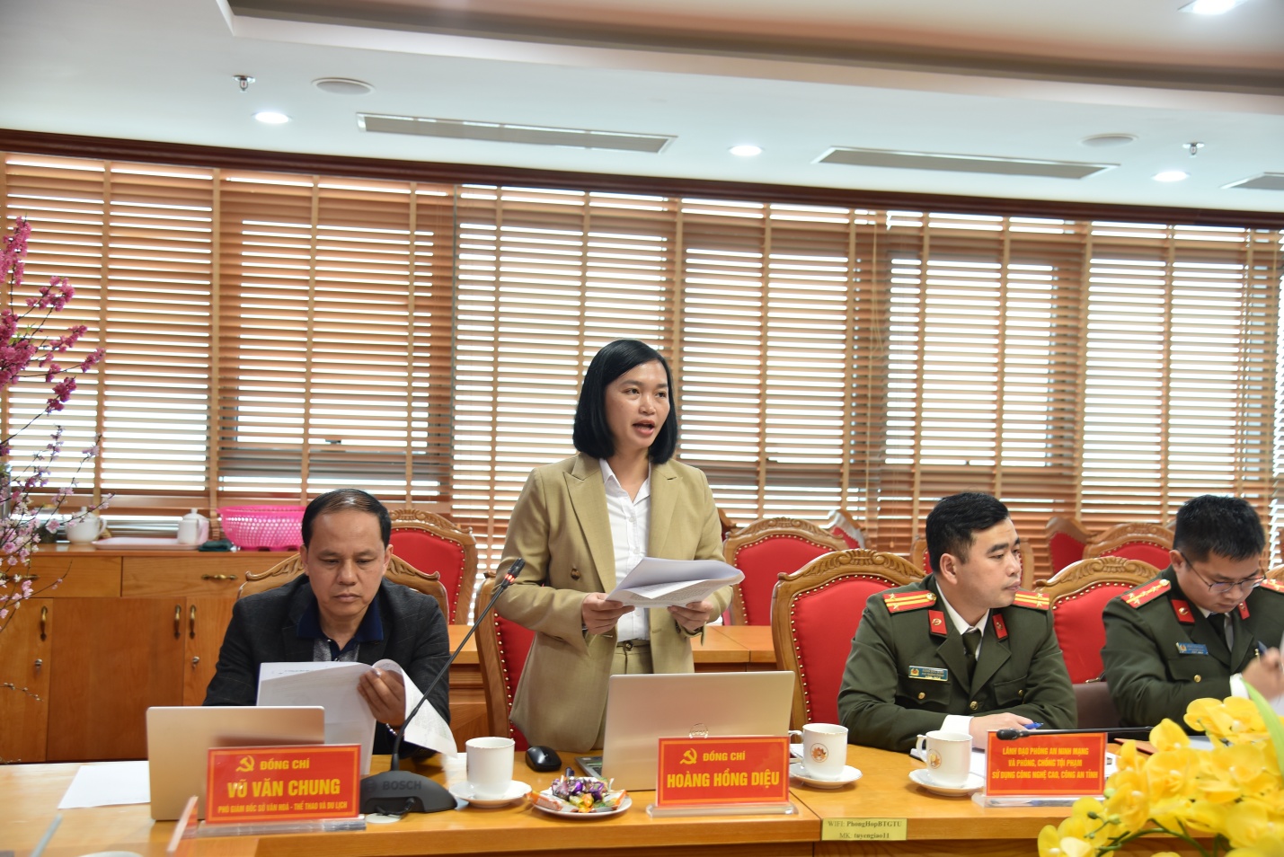 Đồng chí Hoàng Hồng Diệu, Tỉnh uỷ viên, Phó trưởng ban Thường trực Ban Tuyên giáo và Dân vận Tỉnh uỷ phát biểu tại Hội nghị.